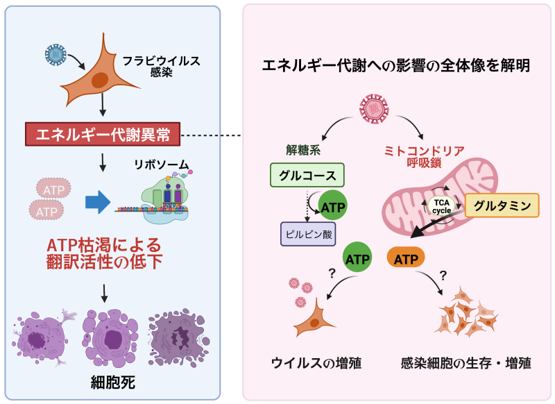 - ウイルスは宿主由来のATPを利用して自らの複製を可能にしているため、ウイルスによる細胞内ATPの消費は細胞の機能異常にも繋がると考えられます。従って、「エネルギー代謝」はウイルス増殖や細胞機能を制御する新たな標的になると考えています。